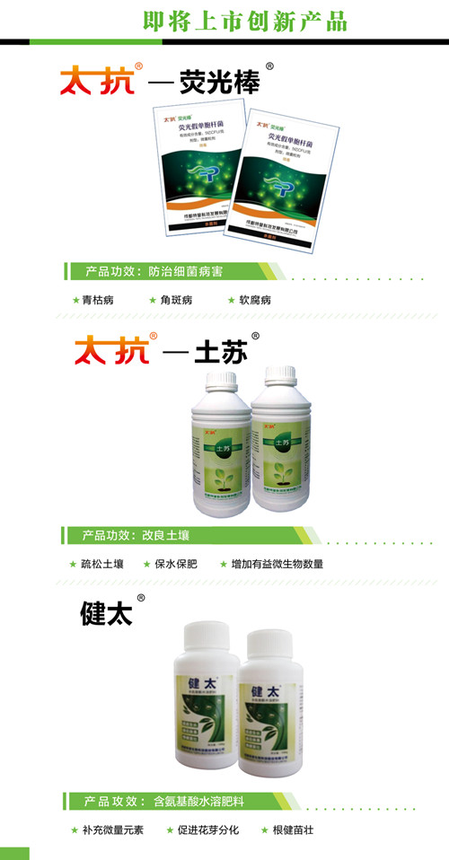特普生物致力于生物農(nóng)藥的研發(fā)、生產(chǎn)和銷售,短時間內(nèi)迅速成長、壯大,在農(nóng)化行業(yè)中成功立足,非常感謝新老客戶朋友的支持!公司將繼續(xù)進行系列產(chǎn)品的開發(fā),拓寬產(chǎn)品線,打造“地上地下”相結合的生物防治產(chǎn)品體系,以不斷滿足用戶和作物病蟲害多樣化的需求,