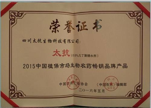 此次發(fā)布會上,中國農(nóng)藥工業(yè)協(xié)會在此次發(fā)布會上首次隆重公布了2015中國植保市場生物農(nóng)藥暢銷品牌產(chǎn)品,太抗——榮獲“2015中國植保市場生物農(nóng)藥暢銷品牌產(chǎn)品”稱號之一。