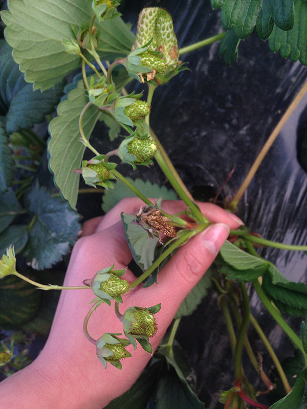 1月5日拍攝,用藥1次后,草莓長勢明顯變好,掛果也多了